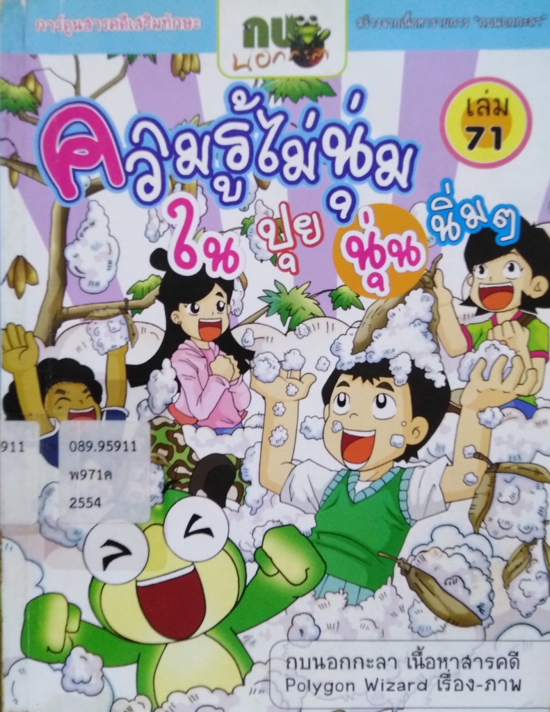 มนุษย์ทุกคนไม่สามารถมีชีวิตอยู่ได้โดยไม่ต้องนอน และการนอนก็ถือว่าเป็นความสุขที่สุดอย่างหนึ่งของชีวิต แล้วนอนอย่างไรให้มีความสุข นอนบนที่นอนอุ่นๆ หนุนหมอนนุ่มๆ ใช่ไหมคะ แต่น้องๆ หนูๆ หลายคน อาจจะไม่รู้ว่าเบื้องหลังความอ่อนนุ่มอุ่นสบายของที่นอนและหมอนนั้น เกิดจากคุณสมบัตินุ่มๆ นิ่มๆ ของปุย "นุ่น" นั่นเอง ถ้าอยากรู้เรื่อง "นุ่น" ให้มากกว่านี้ มาติดตามเรื่องราวกันใน "กบนอกกะลา เล่ม 71 ความรู้ไม่นุ่ม ในปุยนุ่นนิ่มๆ (ฉบับการ์ตูน)"